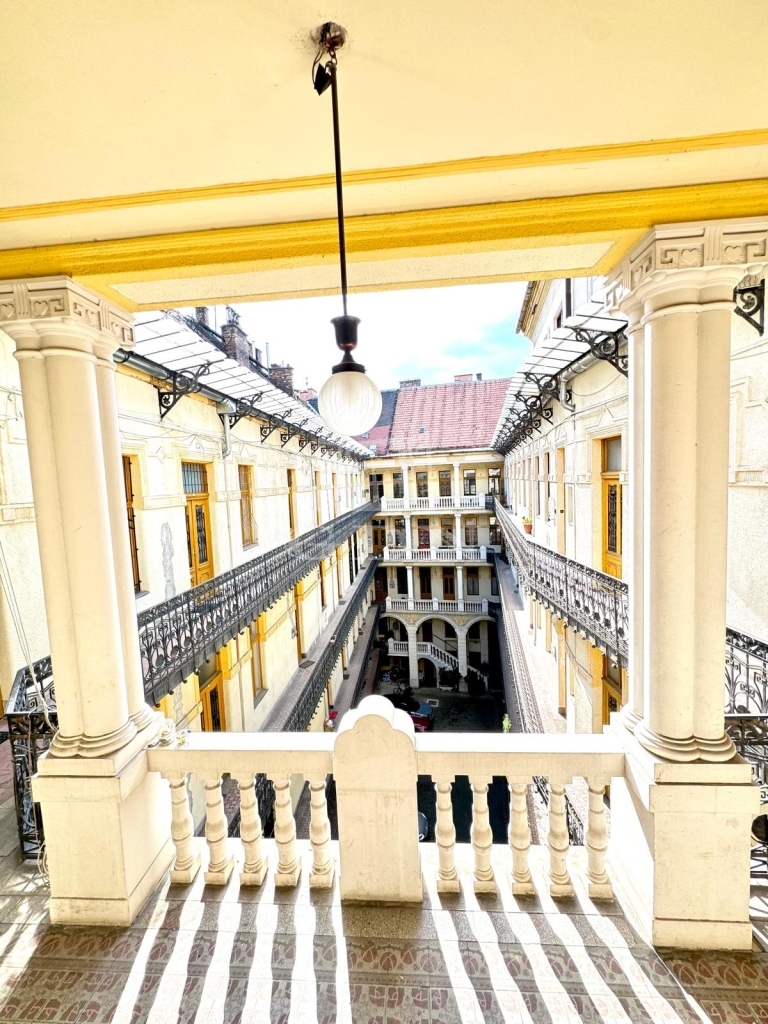 Ráday utca egyik ikonikus, gyönyörű homlokzattal rendelkező liftes épületének legfelső emeletén vált eladóvá, ez a kiváló adottságokkal rendelkező, udvarra néző, csendes lakást.
