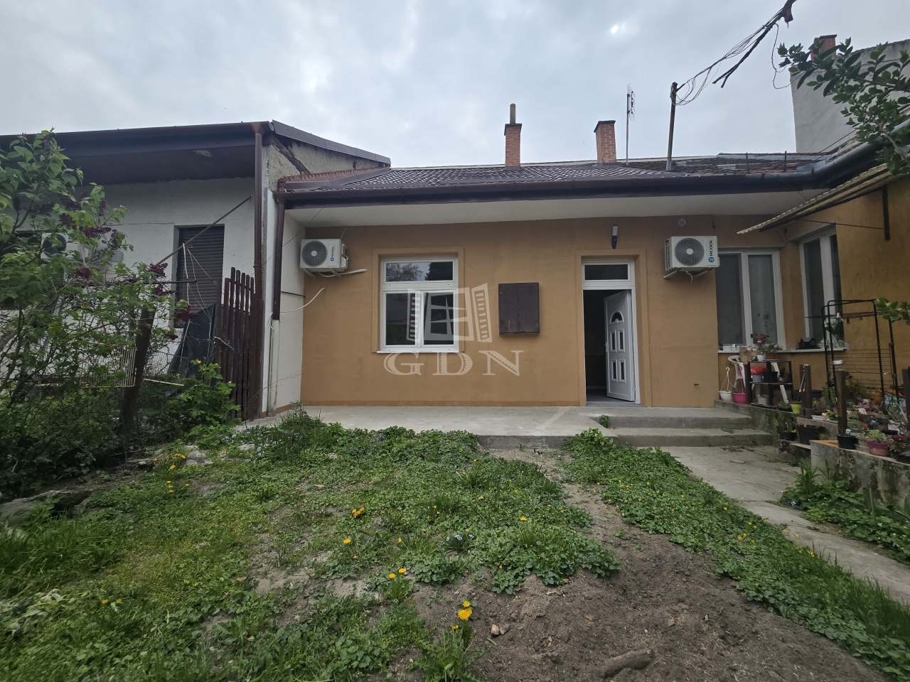 A 1950-es években épült 4 lakásos udvarban. A lakás a földszinten található. A lakás előtt 35 m2 saját kert, terasz és egy közös udvar biztosítja a lakók kikapcsolódását és nyugalmát.
