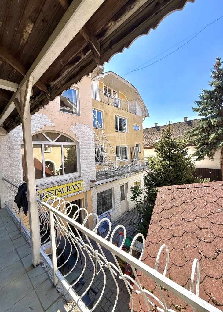 A helyiségben összesen 4 mosdó található: 2 női és 2 férfi, ami nagyobb vendégforgalom esetén is kényelmes használatot biztosít. A konyhából és a nagyteremből egyaránt megközelíthető egy közös belső udvar, amely további lehetőségeket rejt magában, például terasz vagy külön vendégtér kialakítására.