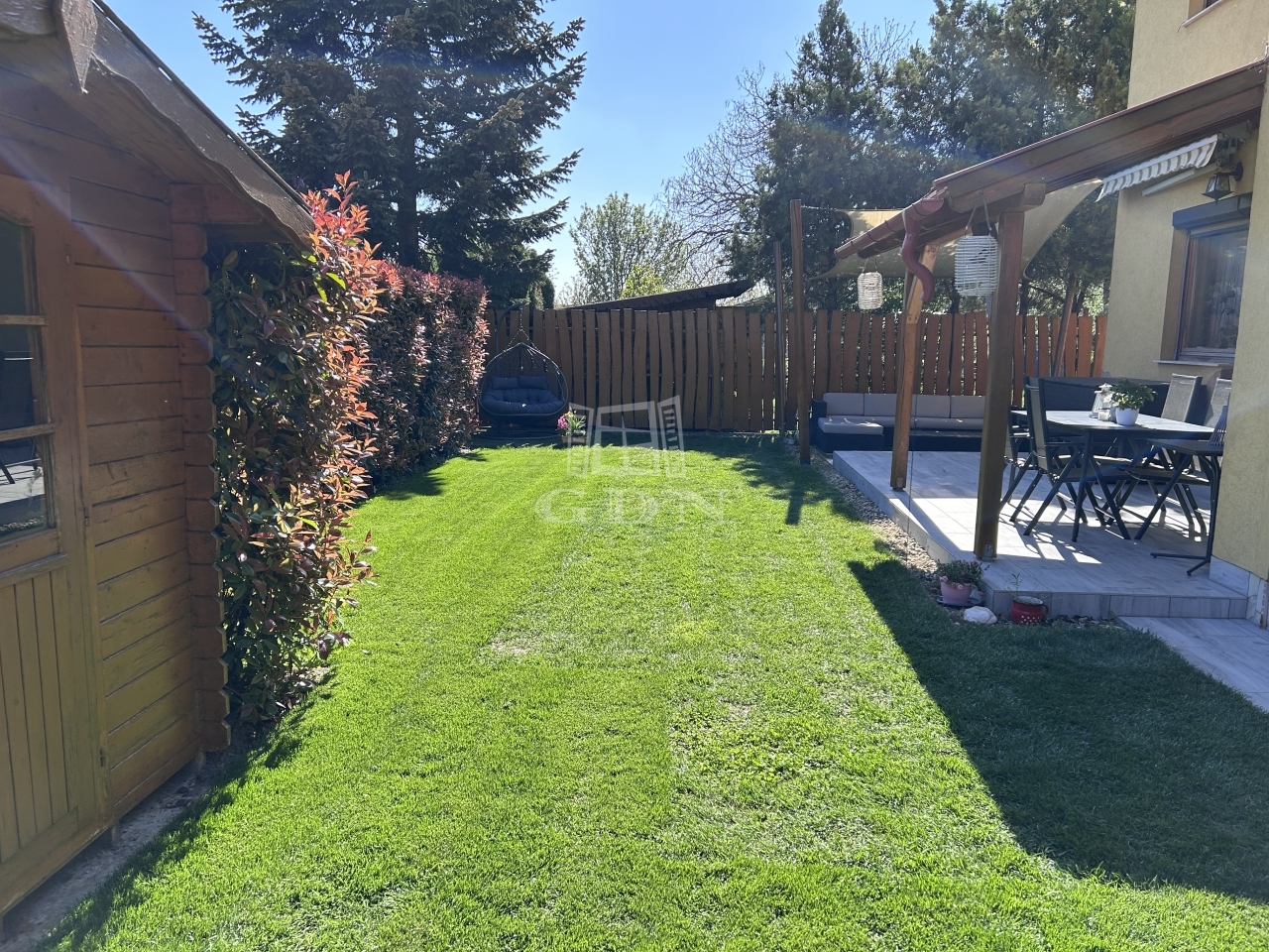 Parkolás: a telken egy zárt, távirányító kapus garázs, és egy nyitott, de fedett autóbeálló található.