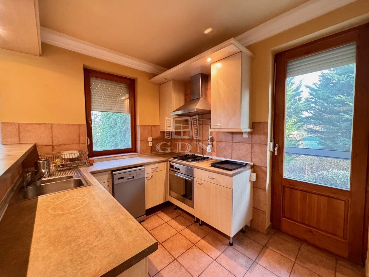 A nyílászárók fa szerkezetű ajtók és ablakok, hőszigetelő kétrétegű üvegezéssel ellátva.