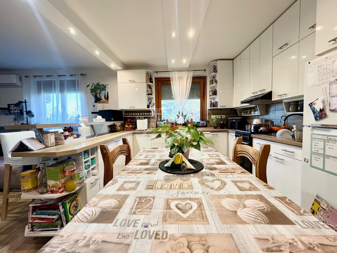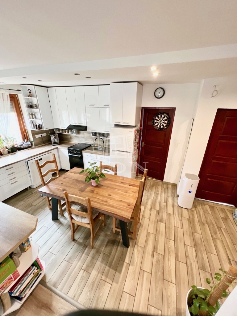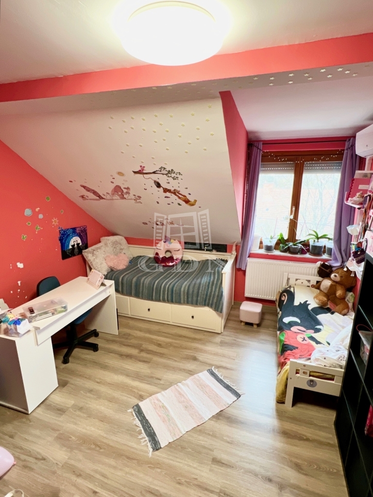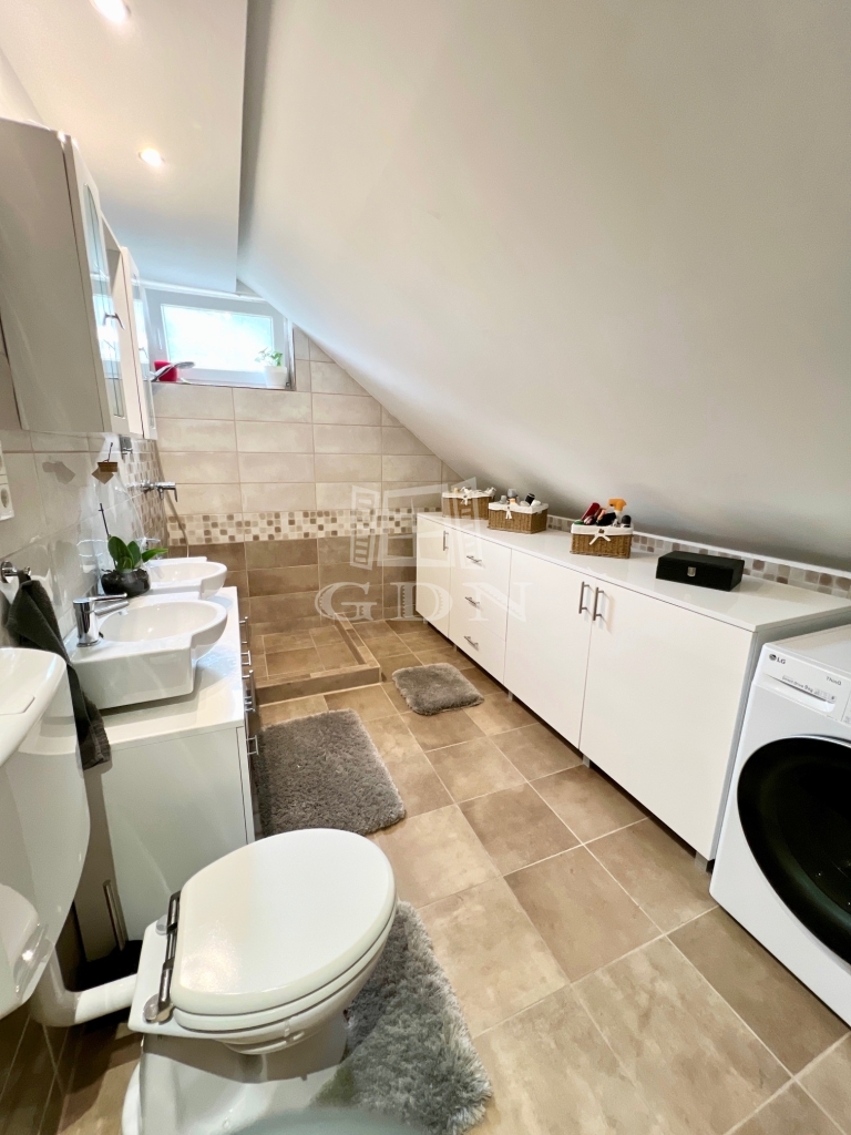 Göd-Felsőgöd kertvárosi környezetében, csendes, aszfaltozott utcában, kiváló közlekedés és ellátottság mellett, 536nm-es összközműves szinteltolásokkal tagolt telken, 1985-ben téglából épült, 3 szintes, (garázs/tároló, földszint, emelet) betonfödémes, 211nm-es lakóterületű, 6 szobás, dupla komfortos, dupla konyhás, kamrás, napos-világos Dk-i fekvésű, gázkazán és vegyestüzelésű kazán fűtésű, belső lépcsőházzal összekötött, de külön bejárattal rendelkező, szeparált, jó állapotú, 2017-ben részben felújított, klimatizált, rugalmasan birtokba vehető 2 generációs ikerház fél, beépített, gépesített konyhával, közvetlenül a házból is megközelíthető tárolóval és 2 gépkocsi számára alkalmas fűtött garázzsal, karbantartott, teraszos kialakítású gondozott kerttel, fúrt kúttal, kulturált környezetben eladó.