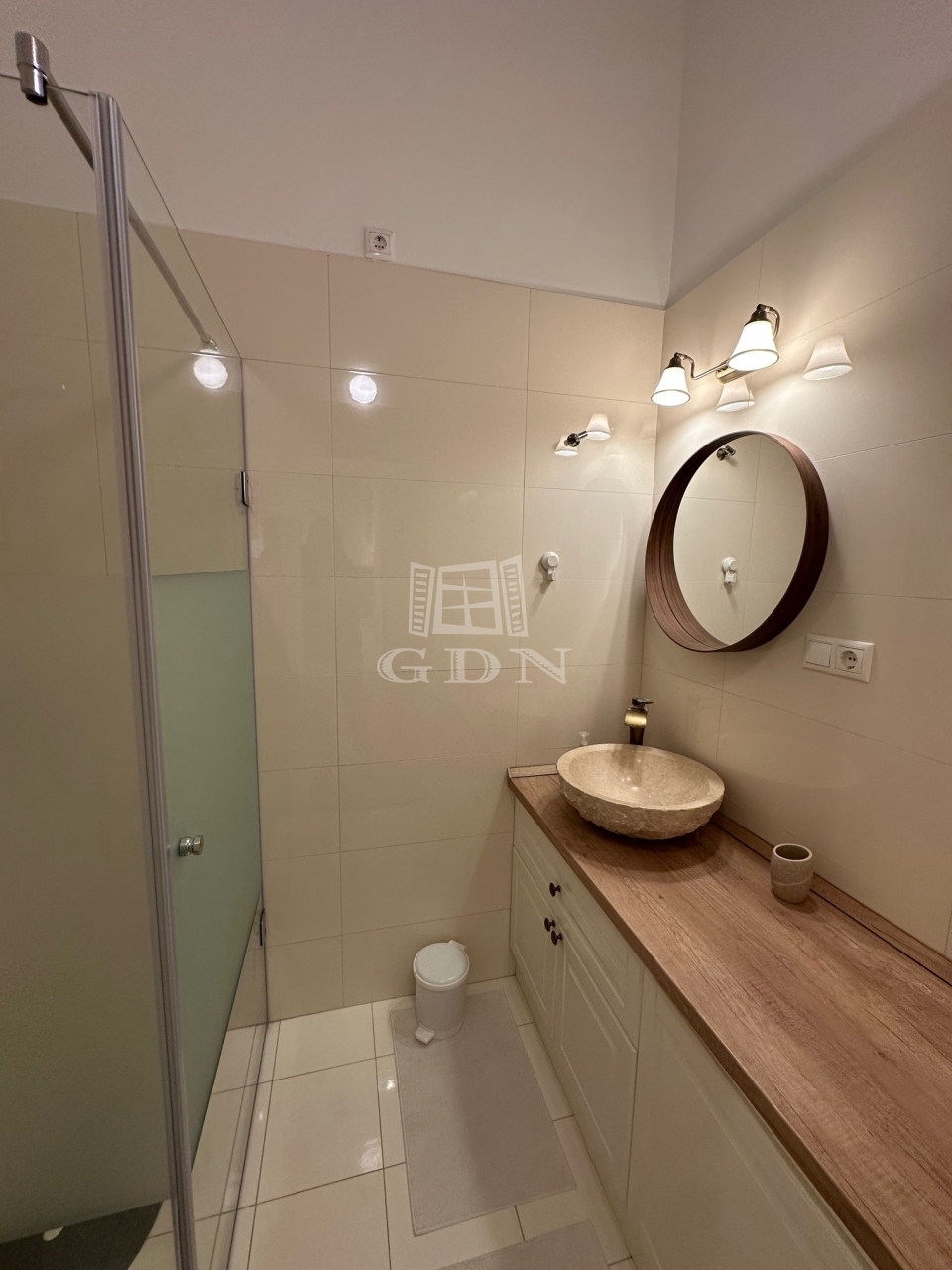 A lakás a második emeleten helyezkedik el, belépve egy étkező részbe érünk, ahol beépített szerkények állnak a rendelkezésünkre.