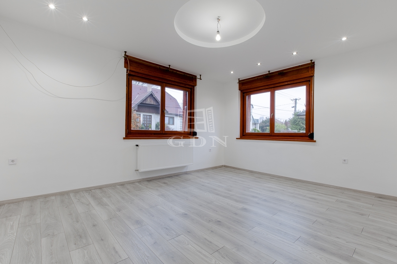 A főépület szuterén (48nm) és az alsó lakás (75 nm), 1980-as években épült, beton alapra 30-as tégla falazattal. 2009-ben ráépült beton födémmel és új tetővel egy külön bejáratú 56 nm-es lakás, illetve mellé épült egy 35 nm-es két állásos garázs elektromos garázskapuval, ami fölött 56 nm-es terasz került kialakításra. Ebben az időben kapott az épület körbe 7 cm dryvit szigetelést és új fa thermo nyílászárókat is.