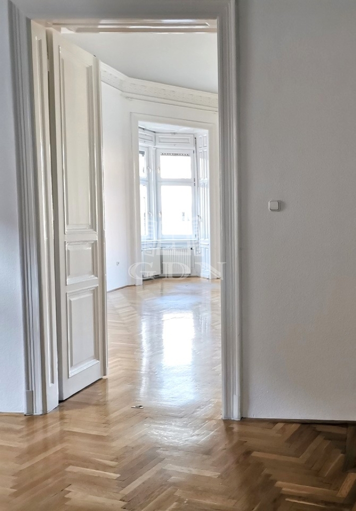A 3 szobás lakásban a tágas terek, a 4,1 méteres belmagasság, valamint a nagy ablakok világos, reprezentatív hangulatot teremtenek. Az eredeti fa nyílászárók is a nagypolgári stílust idézik. A parketta nagyon jó állapotú, a vizes helyiségek azonban teljesen megújultak. Az elrendezése kiváló, nappali, két további szoba, konyha, fürdőszoba és külön WC található benne.