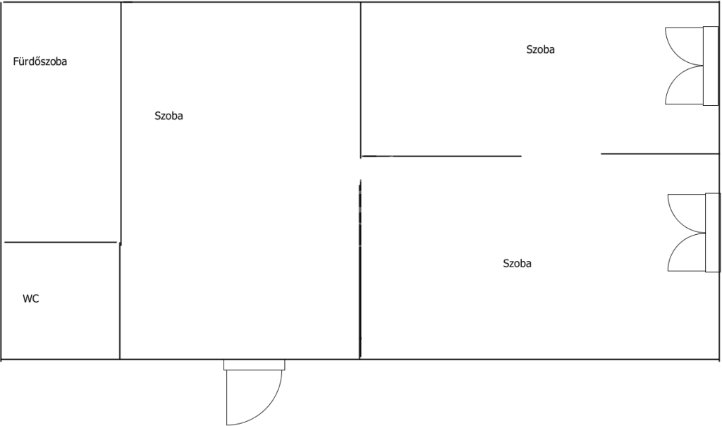A nagyobb helyiség 24 m2 , a 2 kisebb helyiség pedig 9 és 11 négyzetméteresek.
