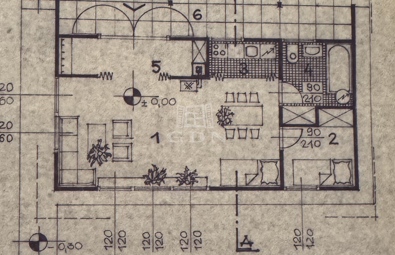 - a 46 nm-es ház helyiségei: előszoba, amerikai konyhás nappali, háló szoba, fürdő