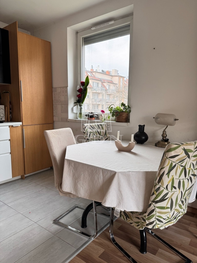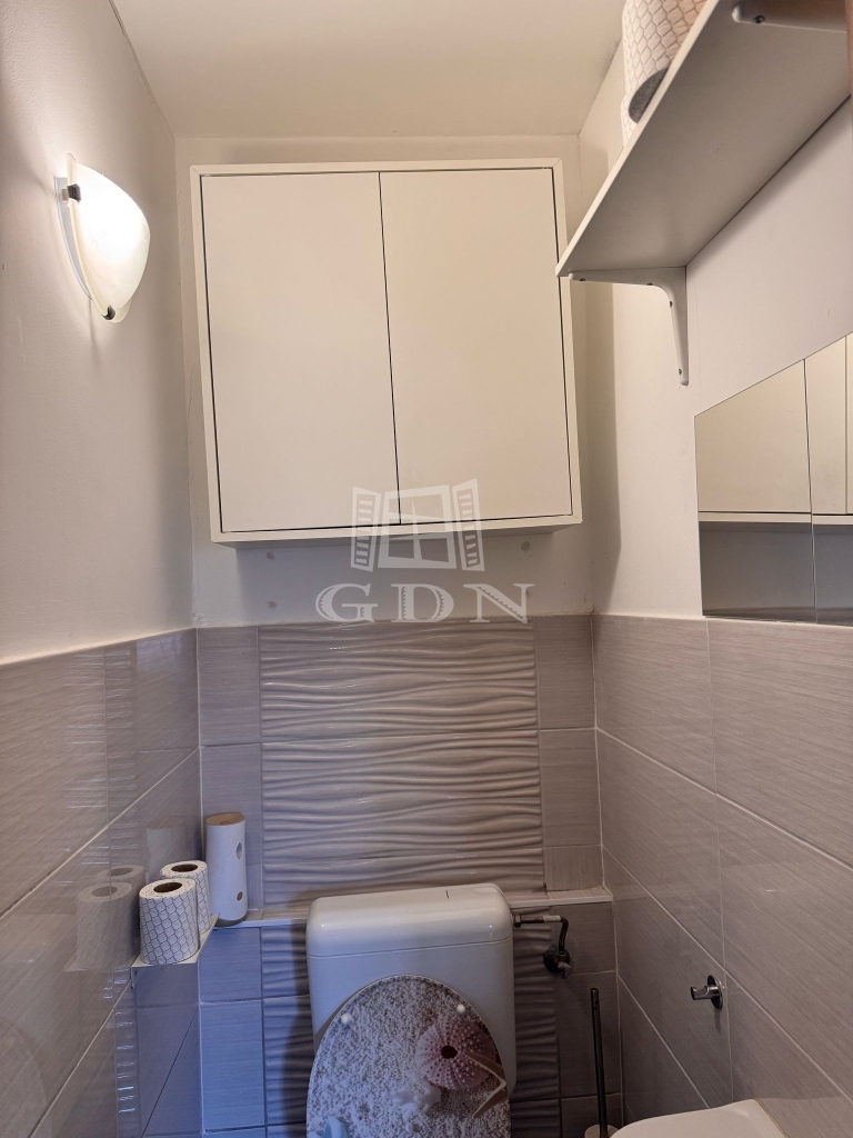 A szobák parkettával burkoltak, míg a konyha, fürdőszoba, WC és közlekedő egységes, esztétikus kőburkolatot kapott. A beépített konyhabútor a vételár részét képezi.