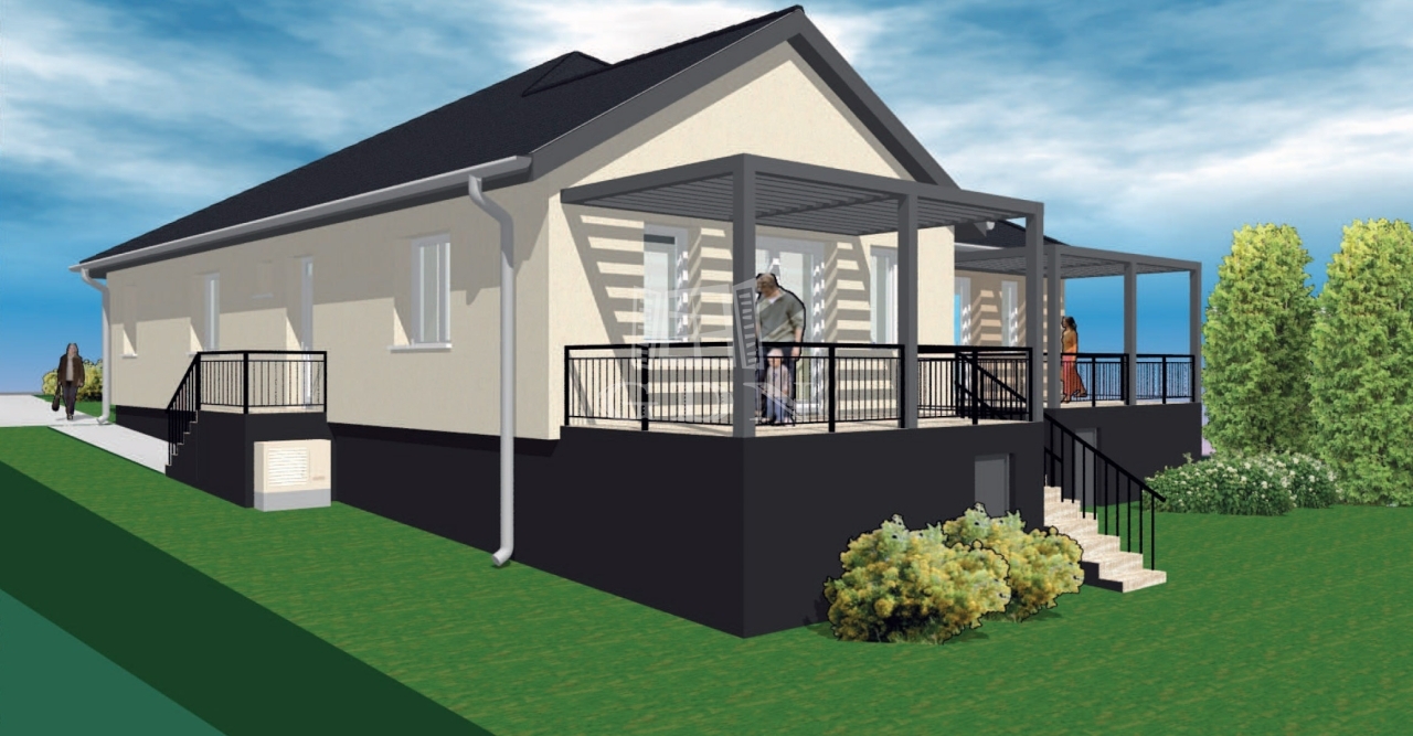 A külső nyílászárók 6 légkamrás háromrétegű üveggel szerelt műanyag thermók lesznek.