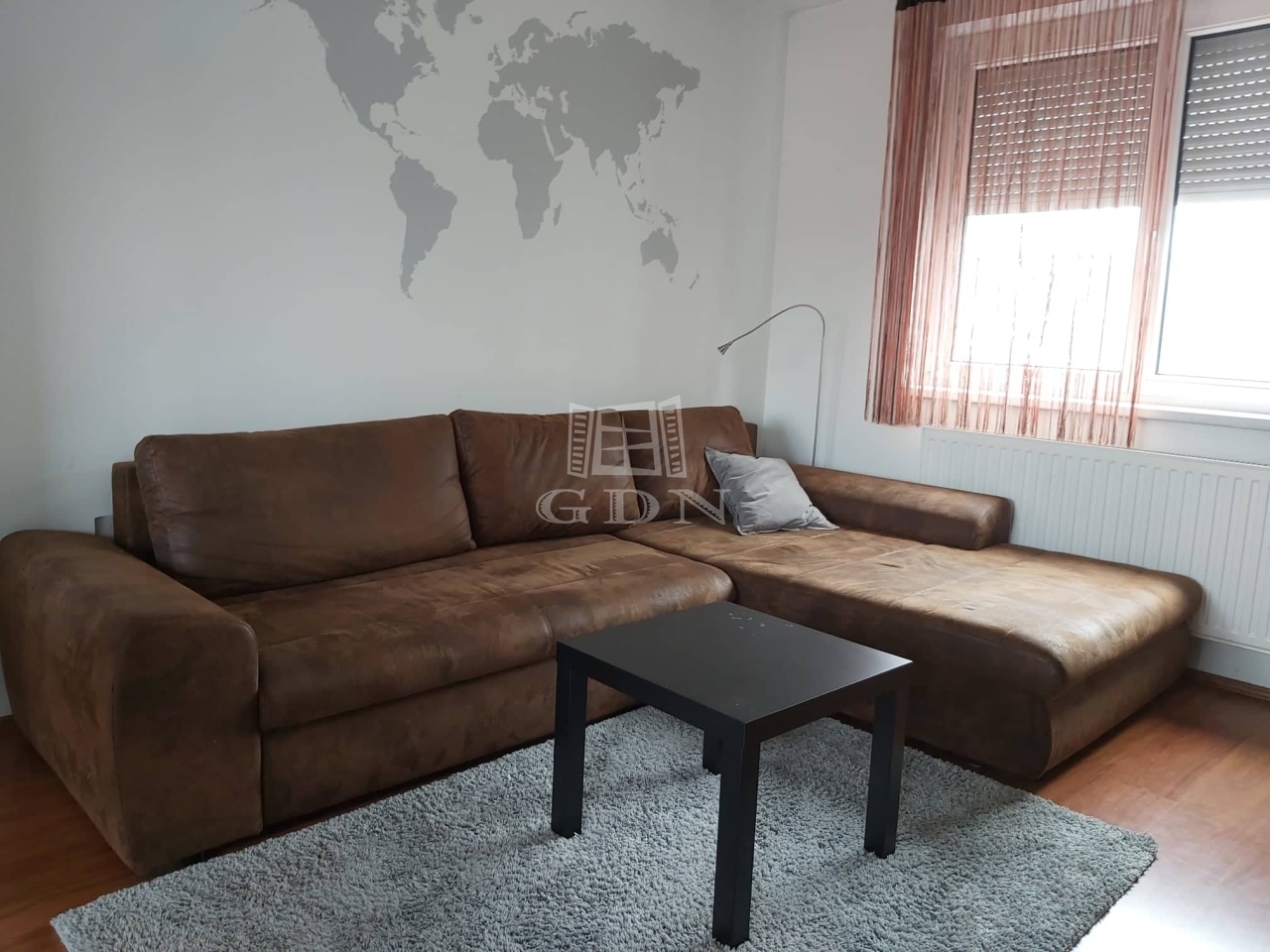 A lakás bútorozott és gépesített (mosógép, mosogatógép, sütő, főzőlap, hűtő, TV, klímaberendezés mindkét szobában).