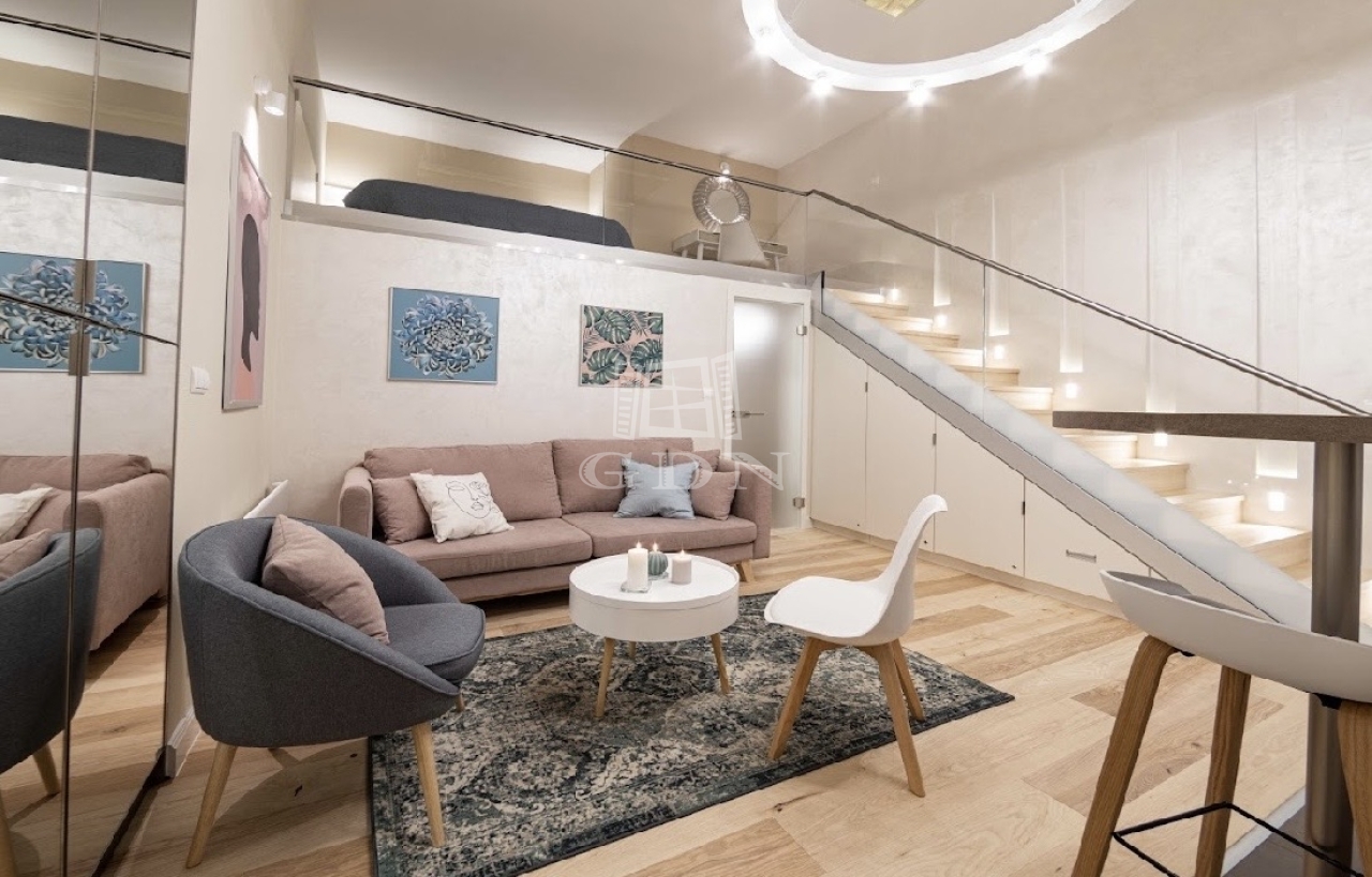 Kiadó az Ó utca központi, mégis csendes részén egy 34 m²-es, belső állógalériás ingatlan, amely lakásként és irodaként egyaránt kiválóan használható.