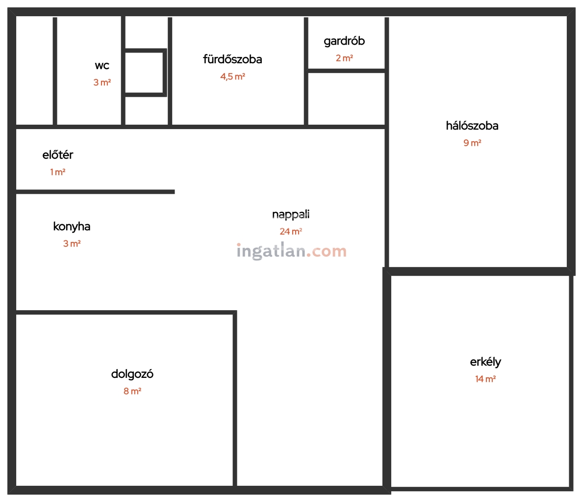 60 m2Alapterület 1 + 2 Szoba