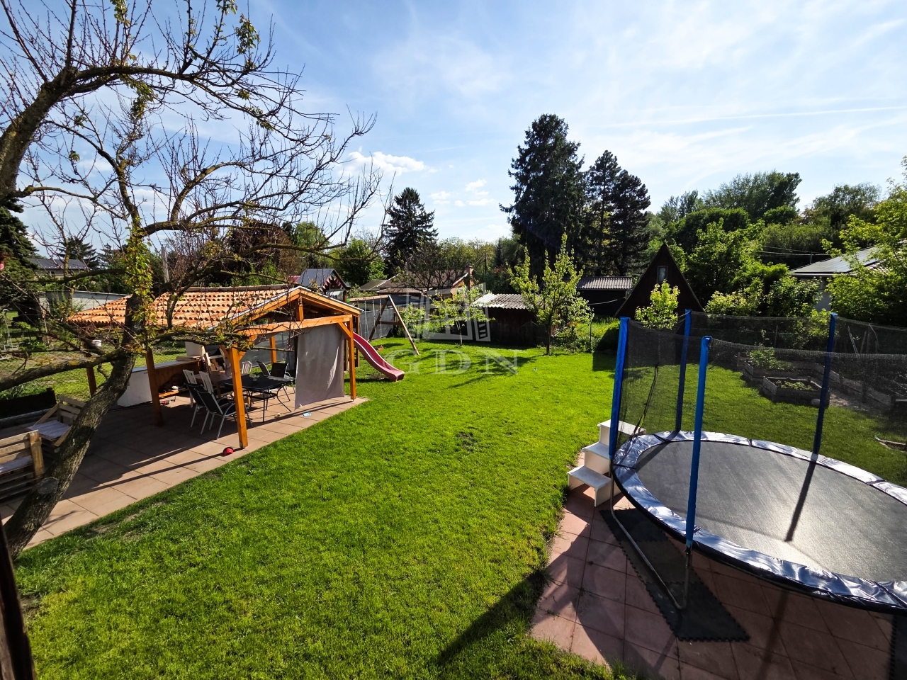 Az udvarban egy tágas fedett terasz / szaletli is található, ami tökéletes helyszíne lehet családi összejöveteleknek vagy baráti grillezéseknek.