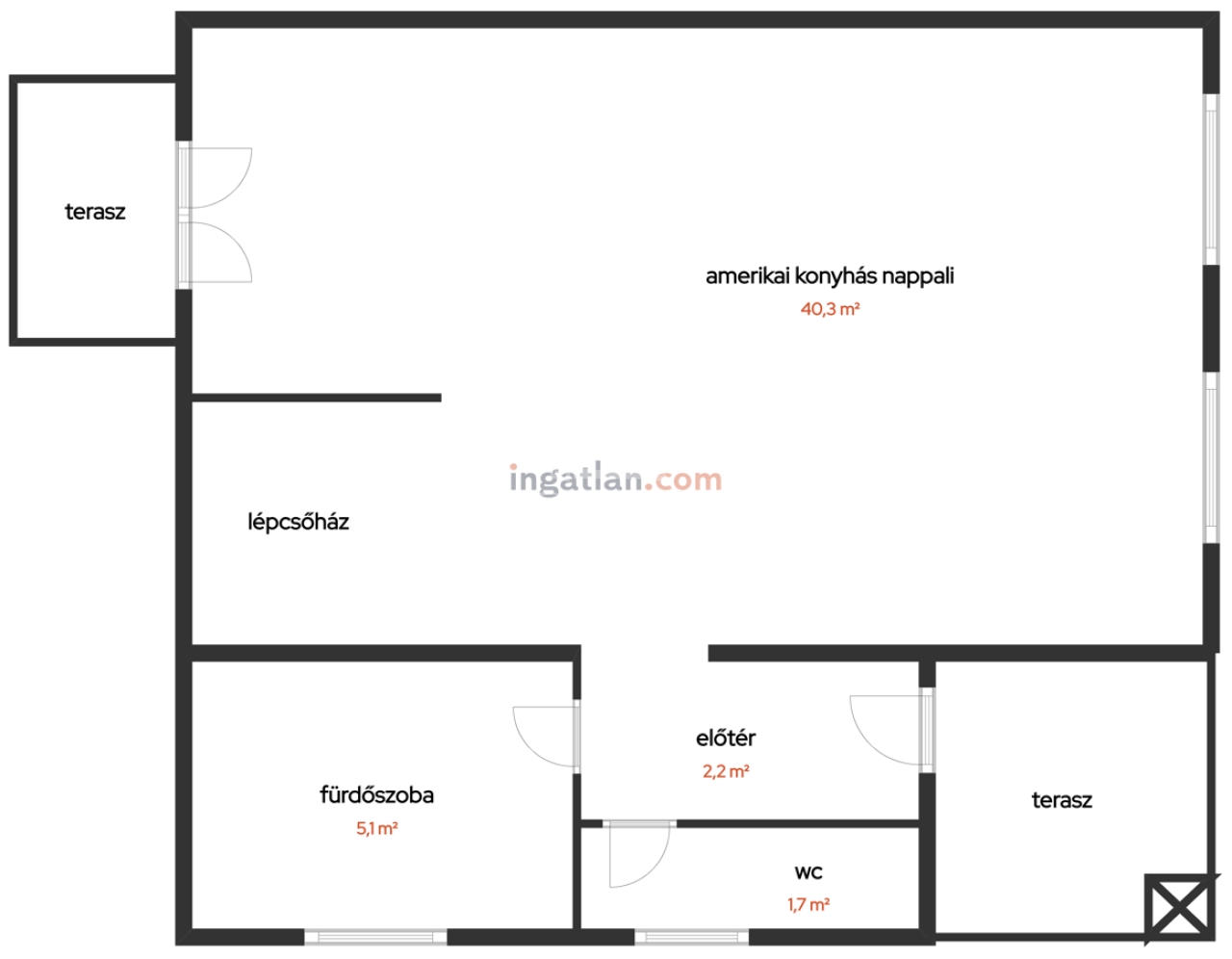 • amerikai konyhás nappali étkezővel.