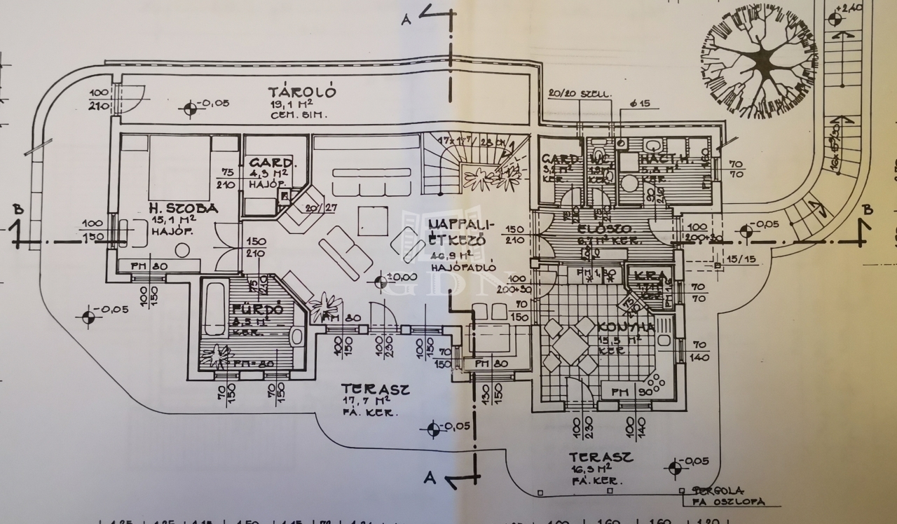Budaörs Kamaraerdőn eladó egy kivételes hangulatú és adottságú, egyedi stílusú családi ház. A teleknek két utcáról van bejárata, elhelyezkedése olyan, mintha egy parkerdő közepén lenne, a házat minden oldalról romantikus kert öleli körül, ide néz és nyílik minden nyílászáró. Csak egy szomszédja van, a szemben lévő oldalon mogyorós, ős fák és kis tó található.