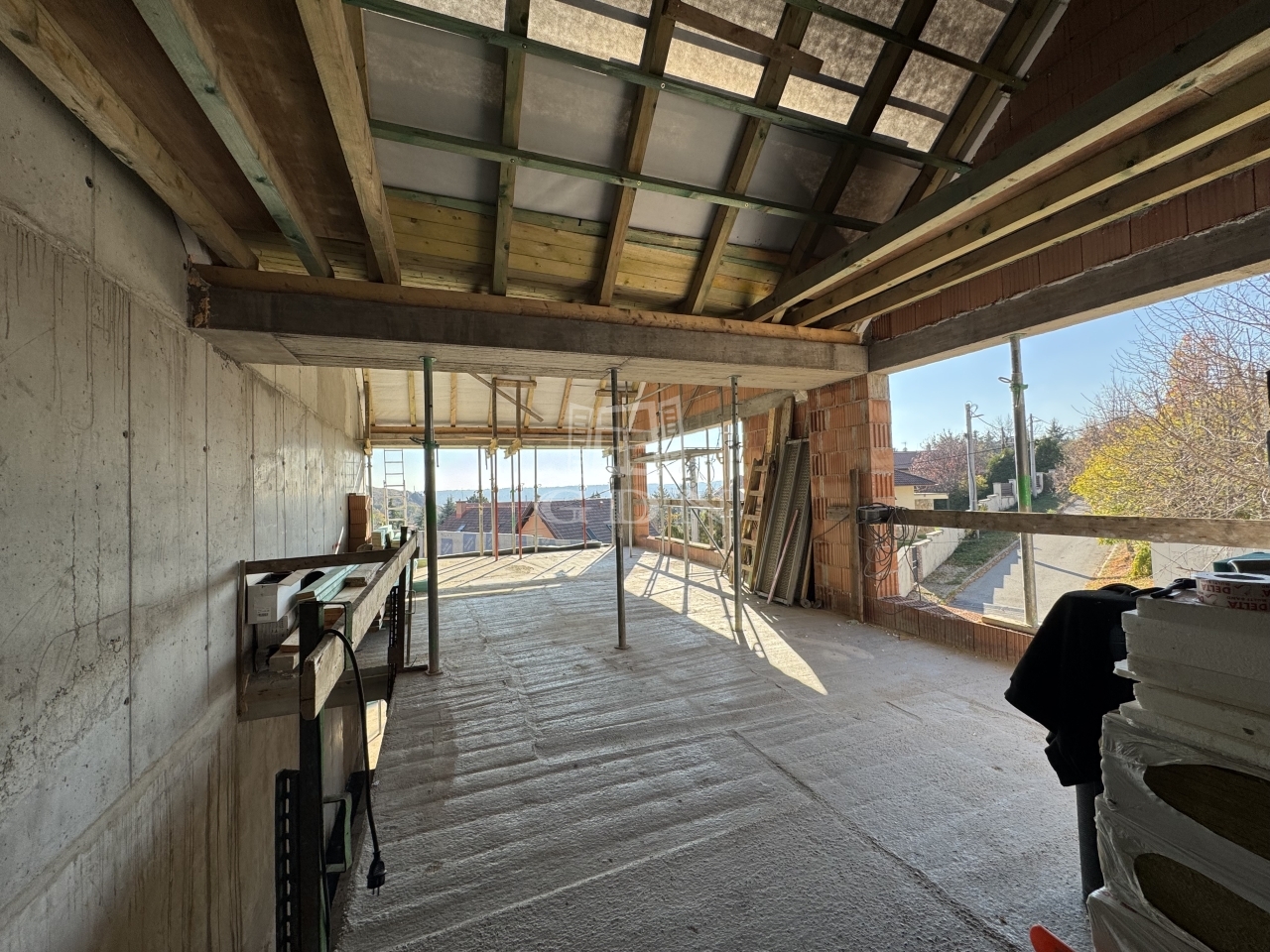 - Emeleti szint: impozáns, egy légterű nappali + étkező + konyha + kamra blokk, külön WC és előszoba