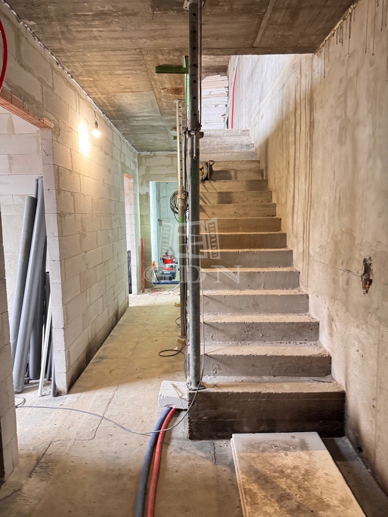 - Két szintes kialakítás: alsó szinten dupla garázs (2 autó részére), két tágas gyerekszoba, fürdőszoba, valamint szülői hálószoba saját fürdővel