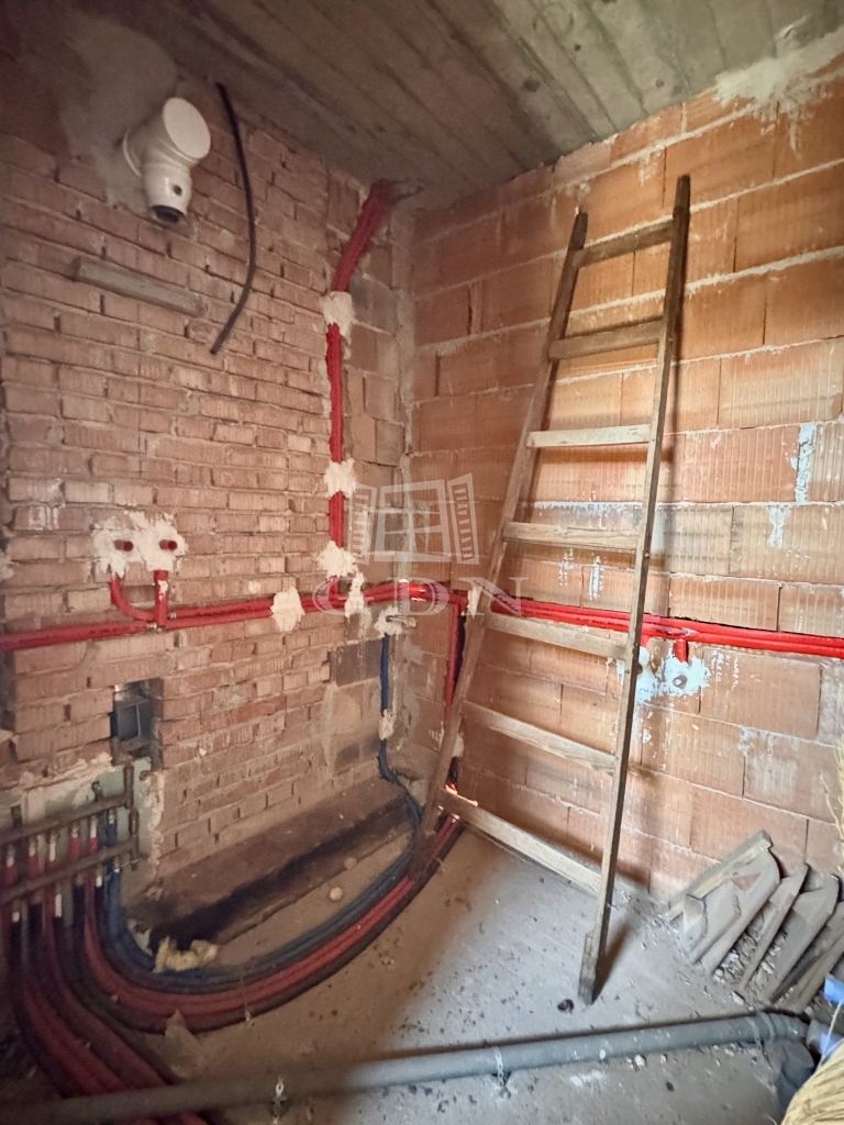 A telken neves építész által tervezett, 4 szintes, szerkezetkész (kb. 70%-ban) ház található.