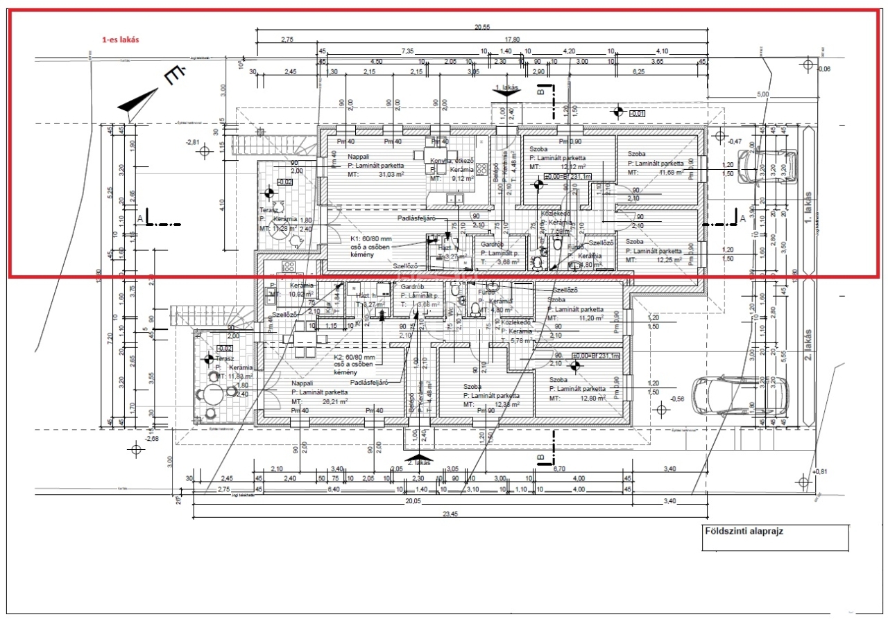 - 31,03 m² nappali,