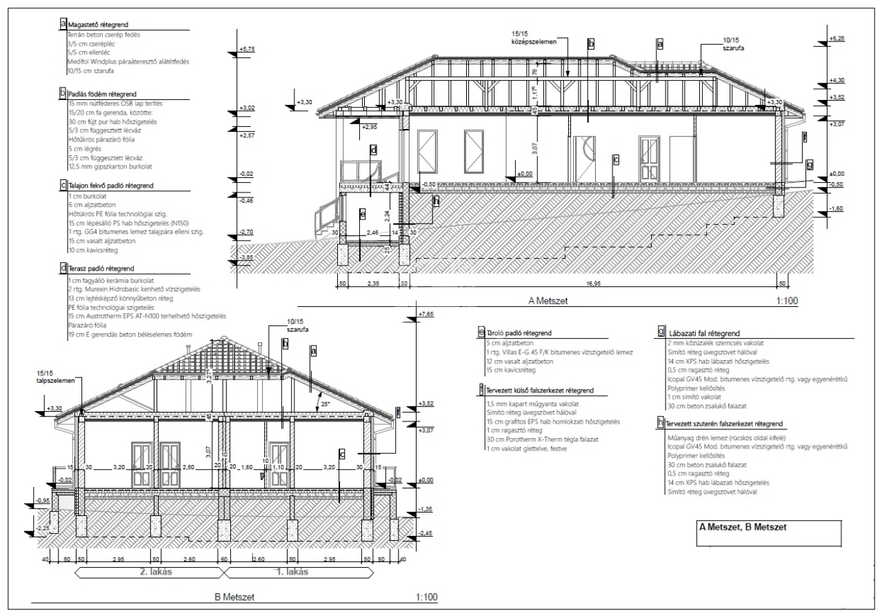 - A külső körítő falak külső oldalai 15 cm grafitos EPS (H 80) hab hőszigetelő vakolatot kapnak.