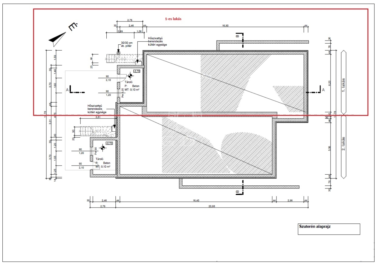 A terasz alatt szuterén tároló 9,10 m² lesz.
